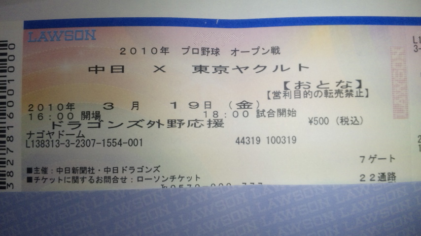 19日のナゴドのヤクルト戦のチケット取りました。