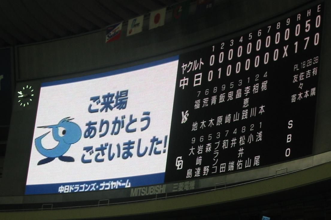 3月21日 ナゴヤドーム 中日1-0ヤクルト